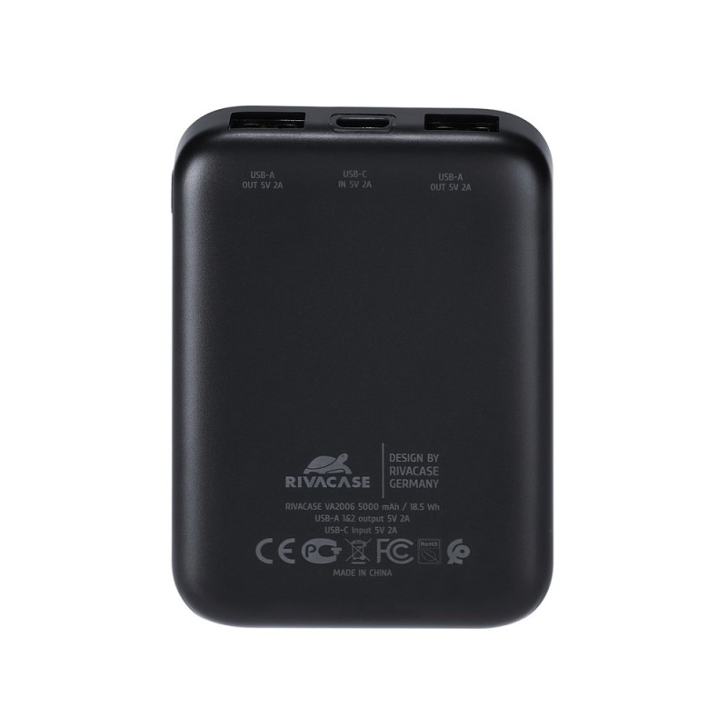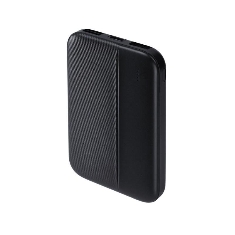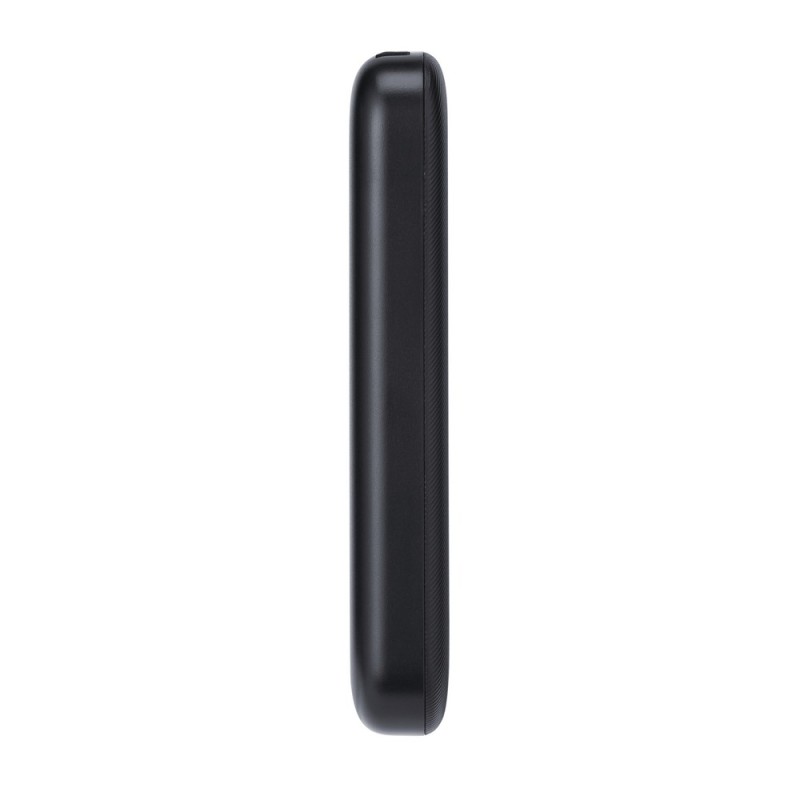 The power bank with a capacity of 5000 mAh and a power of 10W is ultralight and ultracompact, making it very convenient for everyday use. Equipped with a rechargeable battery, it is compatible with all popular models of smartphones, tablets, and other mobile devices. The device has protections against overcharging, excessive discharge, overload, and short circuit, ensuring safe usage. The power bank automatically turns on and off – simply connect a device to one of the output ports to start charging automatically. The battery status can be easily checked by pressing the side button, and four LED indicators show the remaining energy level. The power bank has two 10W USB-A output ports for charging devices and one 10W USB-C input port for charging the power bank itself.