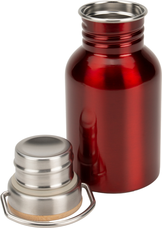 Stainless steel drinking bottle with a capacity of 300 ml and a wooden lid. Due to its size, it fits in every pocket and is therefore the ideal companion. We will apply your logo to the bottle by means of laser engraving. Engraving on the lid possible on request.