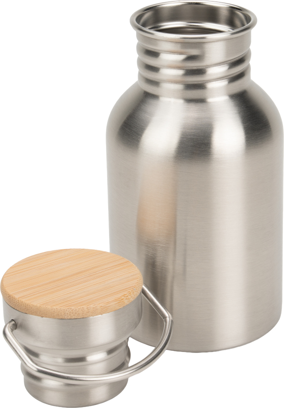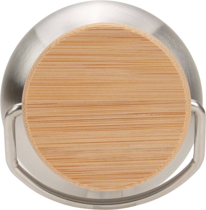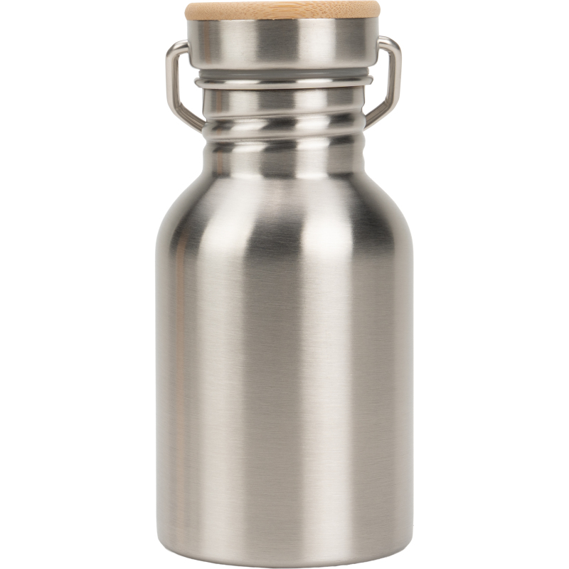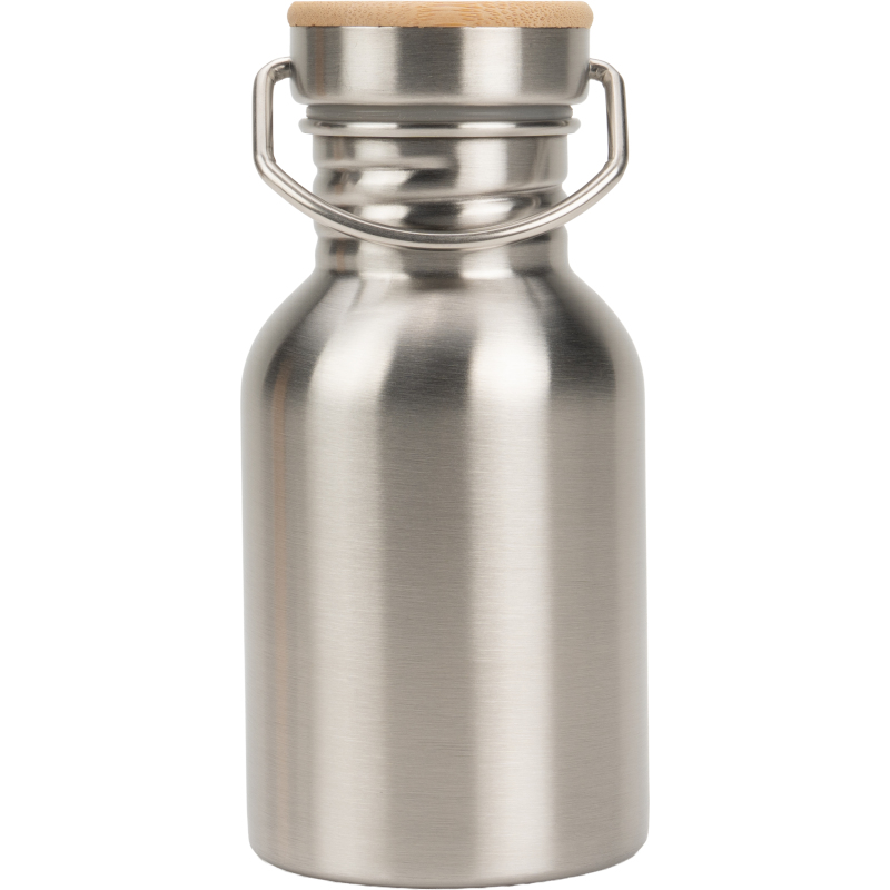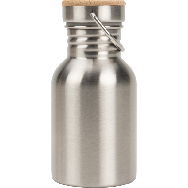 Stainless steel drinking bottle with a capacity of 300 ml and a wooden lid. Due to its size, it fits in every pocket and is therefore the ideal companion. We will apply your logo to the bottle by means of laser engraving. Engraving on the lid possible on request.