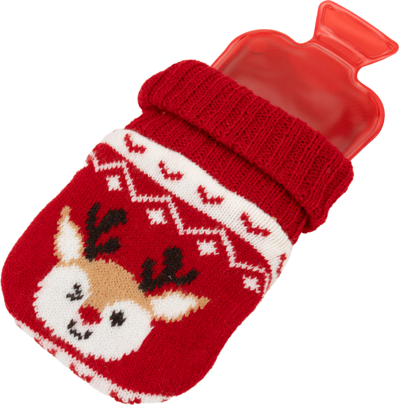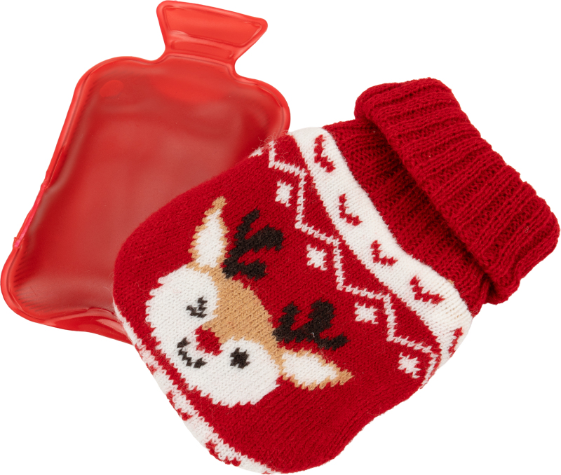 Hand warmer with a Christmas knit cover. The hand warmer is activated by bending the internal metal plate, causing the liquid inside to crystallize and provide pleasant warmth, making it the perfect companion on cold days.