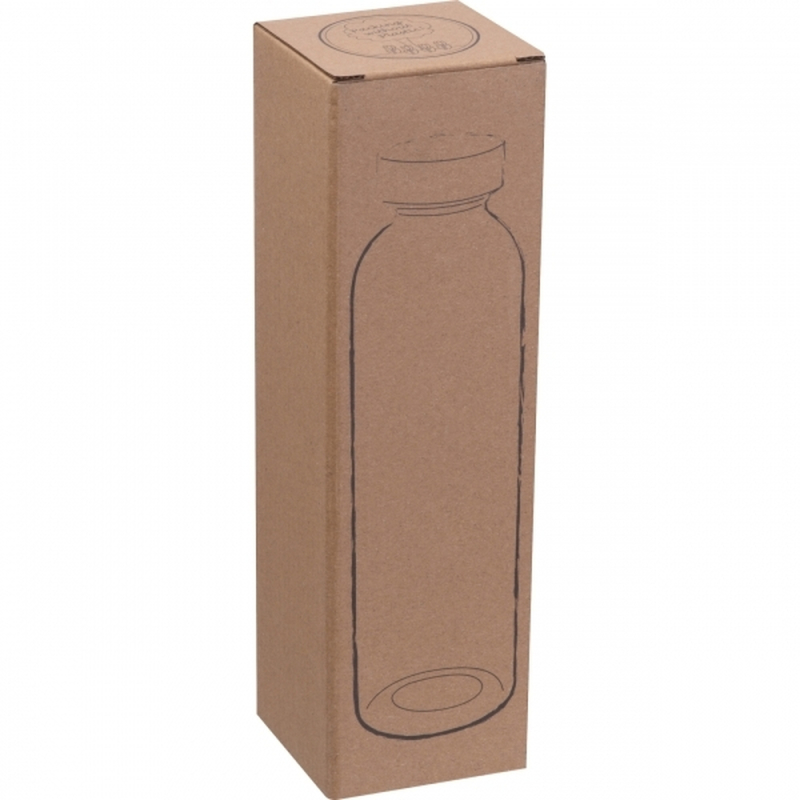 Glass drinking bottle with a capacity of 600 ml and a stainless steel lid. The bottle is suitable for carbonated beverages. We place your logo on the bottle. Engraving on the lid available upon request.