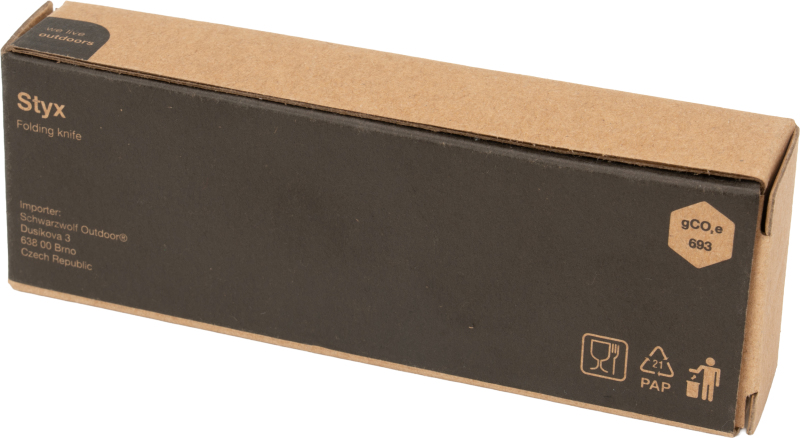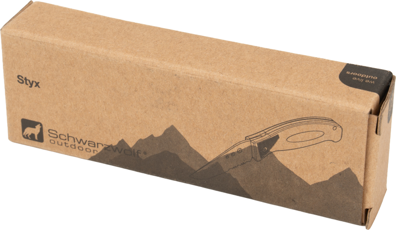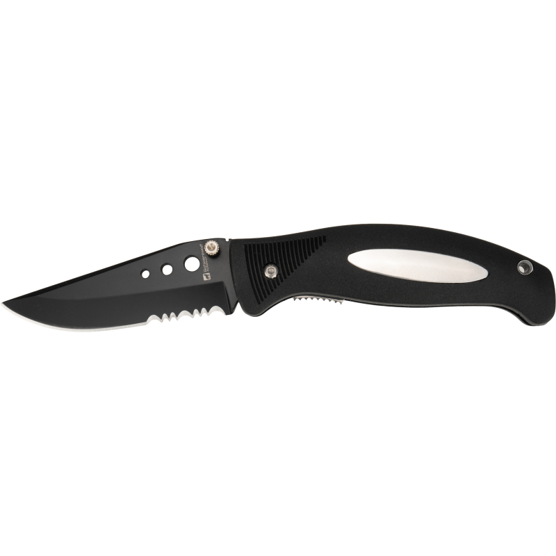 Folding knife Schwarzwolf with plastic handle, belt clip and safety lock. Material: stainless steel and plastic.
