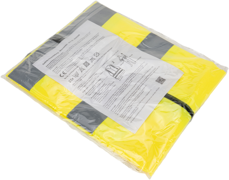 High visibility vest made of polyester. Meets all EU standards. We print your logo on the chest (heart side). Printing on the back possible on request.