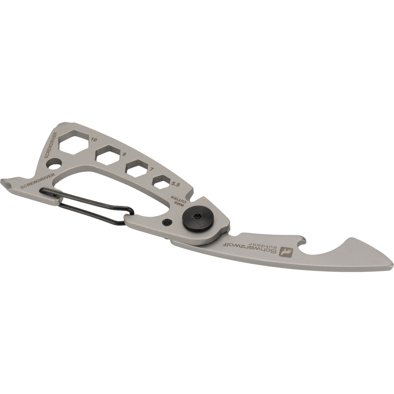 Multifunctional Schwarzwolf tool with 10 functions. It has a carabiner, bottle opener, multifunctional opener, wire cutter, slot head screwdriver, Phillips head screwdriver and spanner (4 sizes). Packed in a Schwarzwolf gift box.