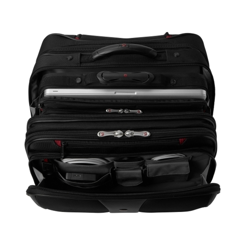 • Computer compartment fits most 15.4/17 widescreens • Matching removable laptop case • Chrome accented recessed carrying handle • Trolley strap keeps bag in place on a rolling suitcase • Organizer compartment for pens, business cards, phone and more