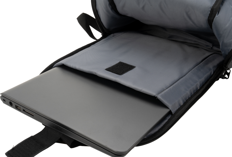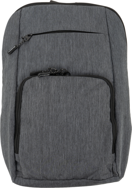 Light and compact Schwarzwolf backpack in a grey color. It includes one main zipper pocket with a padded laptop compartment. In the front is one smaller emergency pocket with a zip and one larger zipper compartment with: small pocket, mesh pocket, carabiner and organizer for pens and documents. The backpack has a padded back and shoulder straps. Capacity: 15l.