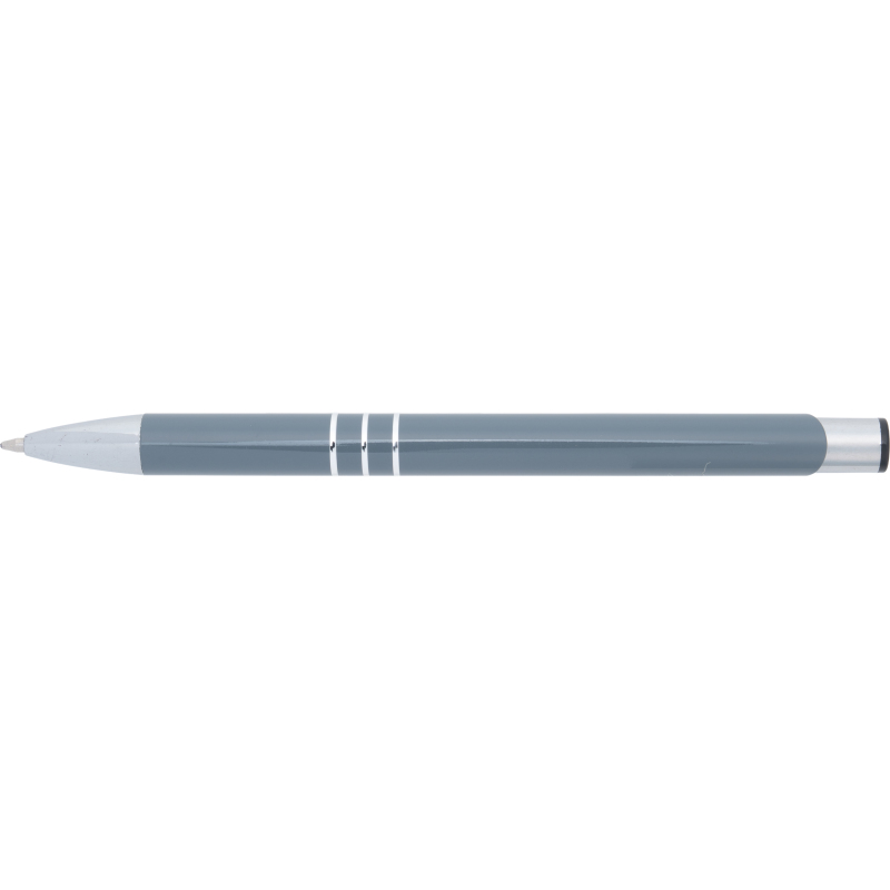 Fully lacquered metal ballpen with 3 decorative rings and blue-writing refill with large capacity. Your logo will be engraved to the right of the clip.