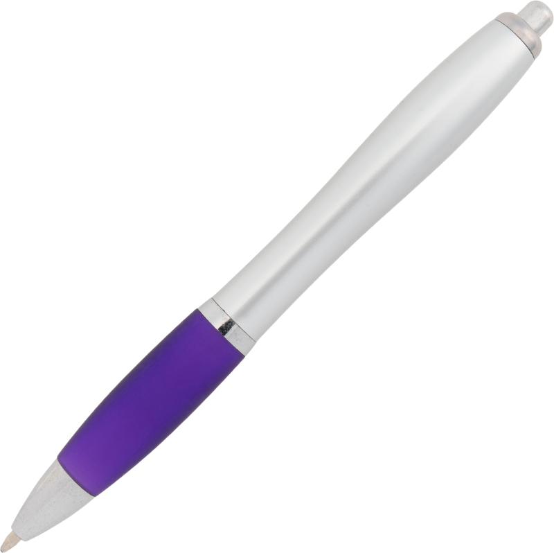 Ballpoint pen with blue writing large capacity refill and color contrast soft touch grip zone. We print your logo on the right side of the clip.