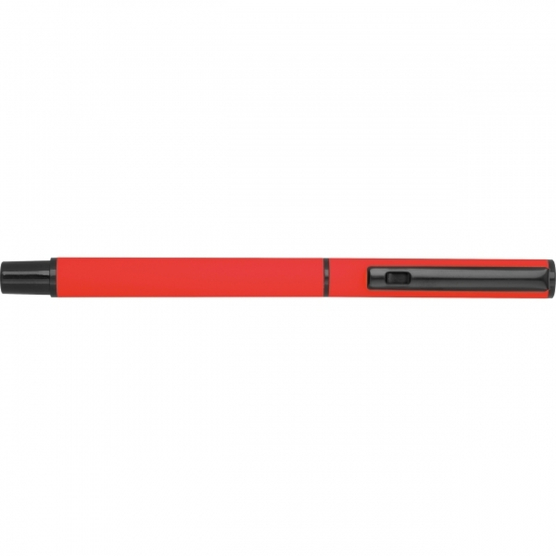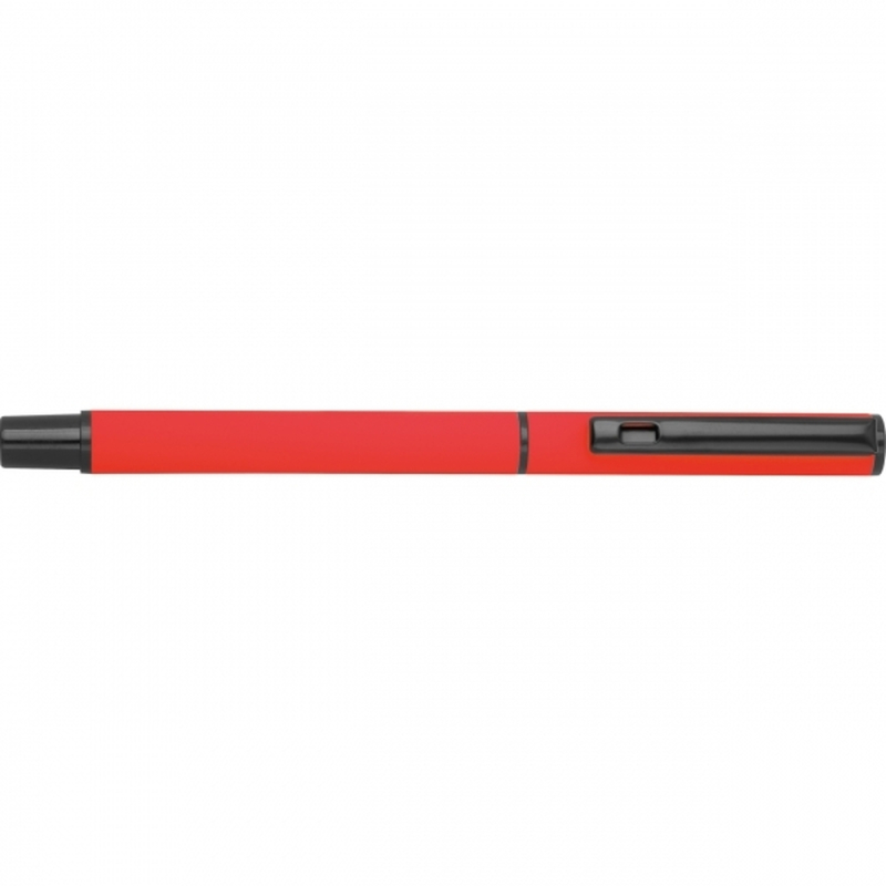 Writing set consisting of a black-ink rollerball pen and a blue-ink twist ballpoint pen (with large-capacity plastic refill), packaged in a box. Your logo is applied to both pens using laser engraving, in the same size.