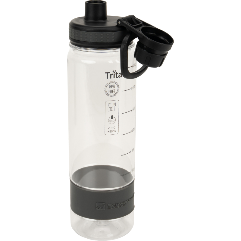 Sportowa butelka Schwarzwolf wykonana z Tritanu o gumowej powierzchni. Nie zawiera BPA. Odpowiednia do zimnych i ciepłych napojów od 10ºC do 90ºC. Na dolnej części butelki znajduje się silikonowy pasek z logo Schwarzwolf. Pakowana w pudełko Schwarzwolf.
