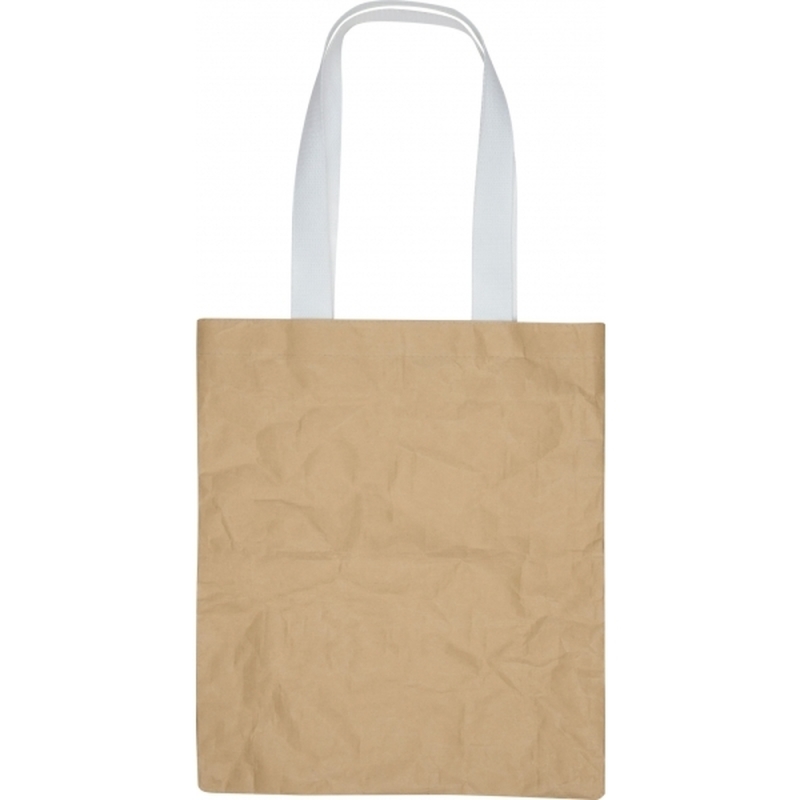 Torba wykonana z papieru z materiałowymi, długimi uszami. Dostępna w kolorze beżowym.
