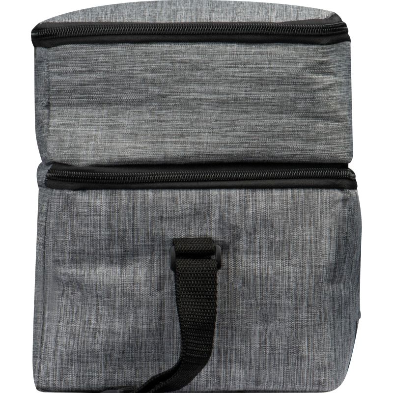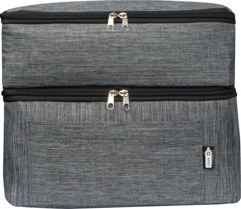 Torba termiczna wykonana z materiału RPET z dwoma chłodzącymi komorami i fronotwą kieszonką zamykaną na zamek. Torba została wyposażona w długi, regulowany pasek na ramie, ułatwiający przenoszenie.