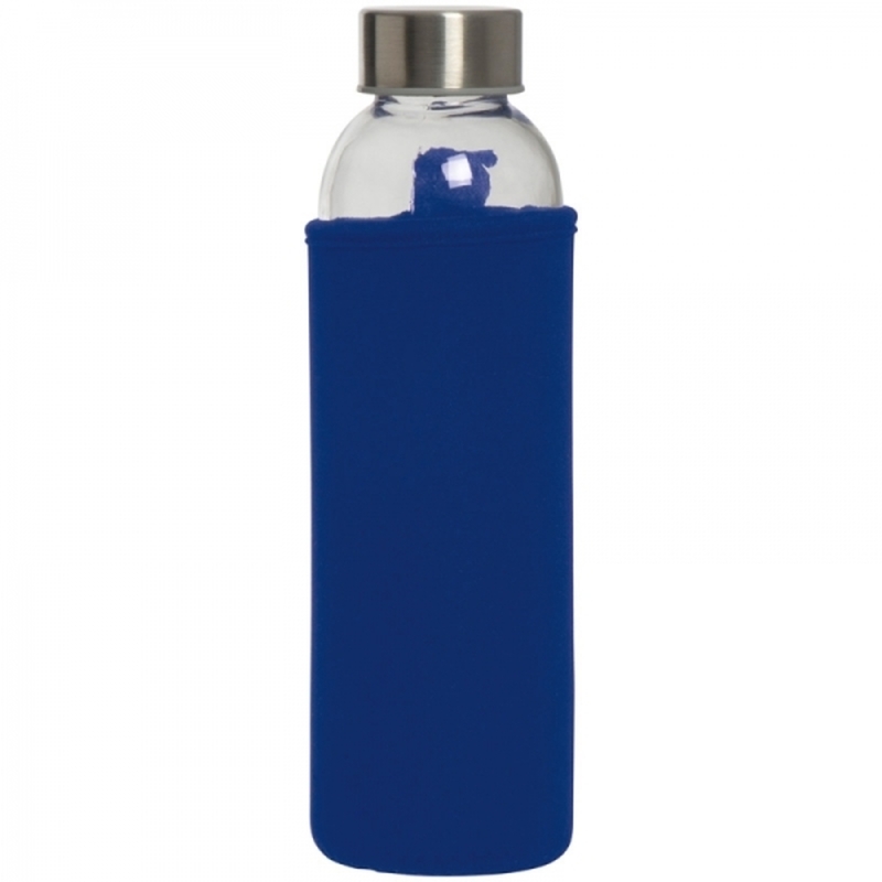 Szklana butelka z metalową zakrętką, w etui z neoprenu, o pojemności 500 ml. Dostępna w bogatej gamie kolorystycznej.