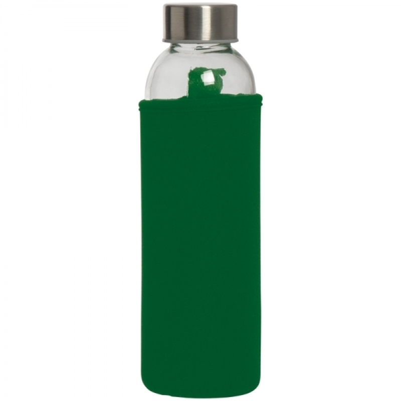 Szklana butelka z metalową zakrętką, w etui z neoprenu, o pojemności 500 ml. Dostępna w bogatej gamie kolorystycznej.