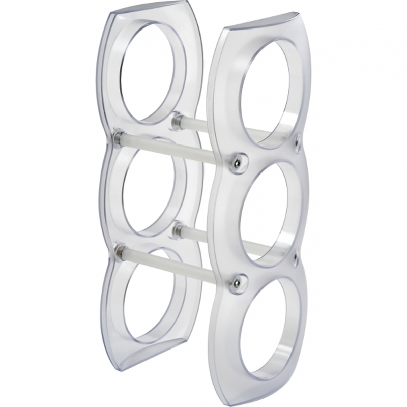 Stojak na 3 butelki wina wykonany z matowego tworzywa sztucznego. W zestawie: śruby do montażu i instrukcja obsługi.