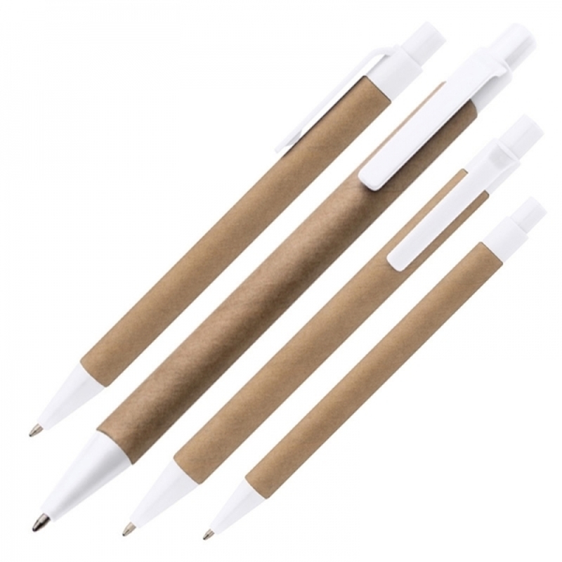 Długopis automatyczny w wersji ekologicznej, bo wykonany w 100% z tektury pochodzącej z recyklingu. Długopis z tektury zawiera wkład piszący na niebiesko.