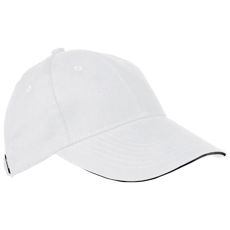 Sporty and trendy! 6-panel sandwich baseball cap made of heavy brushed cotton with a matt silver metal snap closure. The sandwich cap comes with a white stripe in the middle of the visor. This cap is very trendy and comes in high-quality heavy cotton. We will embroider your logo onto the front. The price for embroidery is per 1.000 stitches. Standard embroidery requires about 8.000 stitches.