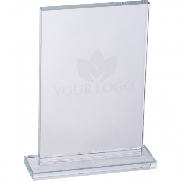 Glass trophy with base. The trophy is packaged in a gift box with satin lining and magnetic closure. Your logo is applied to the trophy using laser engraving.