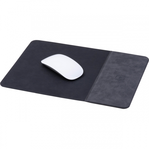 Mouse pad made of polyurethane (PU) with a wireless charging area. To use the 15W wireless charging surface with a compatible smartphone, the mouse pad must be connected to a suitable power source using the included USB-A to USB-C charging cable. Your logo is printed on the lower third of the charging area. Center printing on the mouse pad is available upon request.