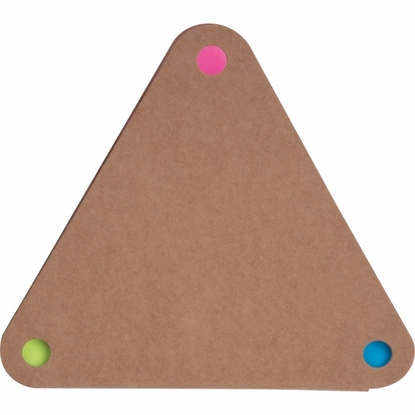 Triangle-shaped sticky note booklet. The booklet contains 20 larger white sticky notes and 3 x 20 smaller colored sticky notes. Your logo is printed on the outside of the cover.