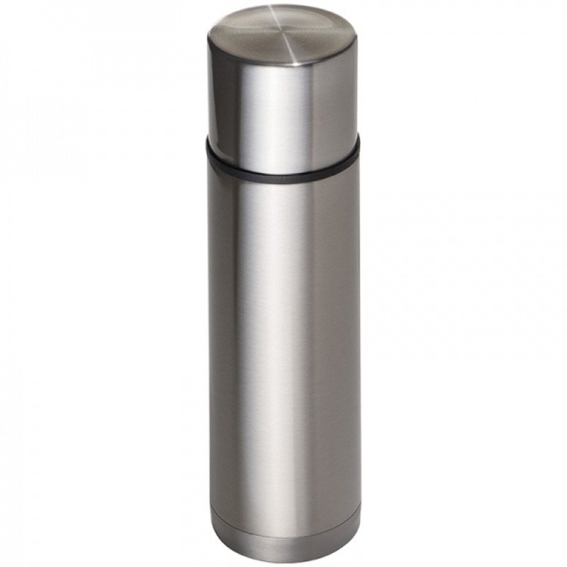 Stainless steel vacuum flask with 500ml filling capacity and integrated cup in the lid. Your logo will be engraved.