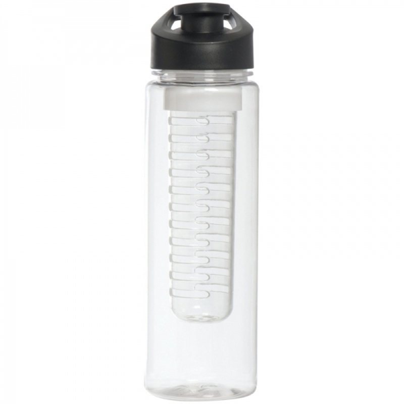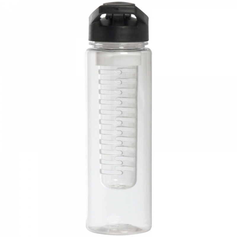 Large, leak-proof drinking bottle BPA-FREE (capacity 700 ml) with removable fruit insert. In the lid is a large drinking opening with closure and a carrying handle integrated. We print your logo on the bottle.
