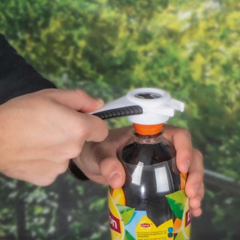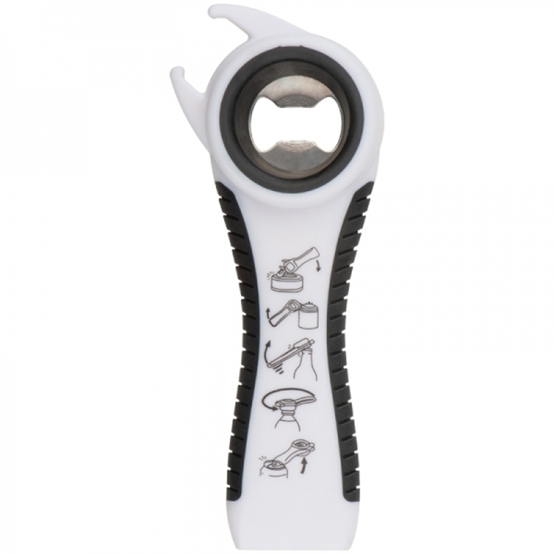 The almost all-purpose opener simplifies the opening of cans, bottles and jars. It makes life easier! We print your logo on the white surface.
