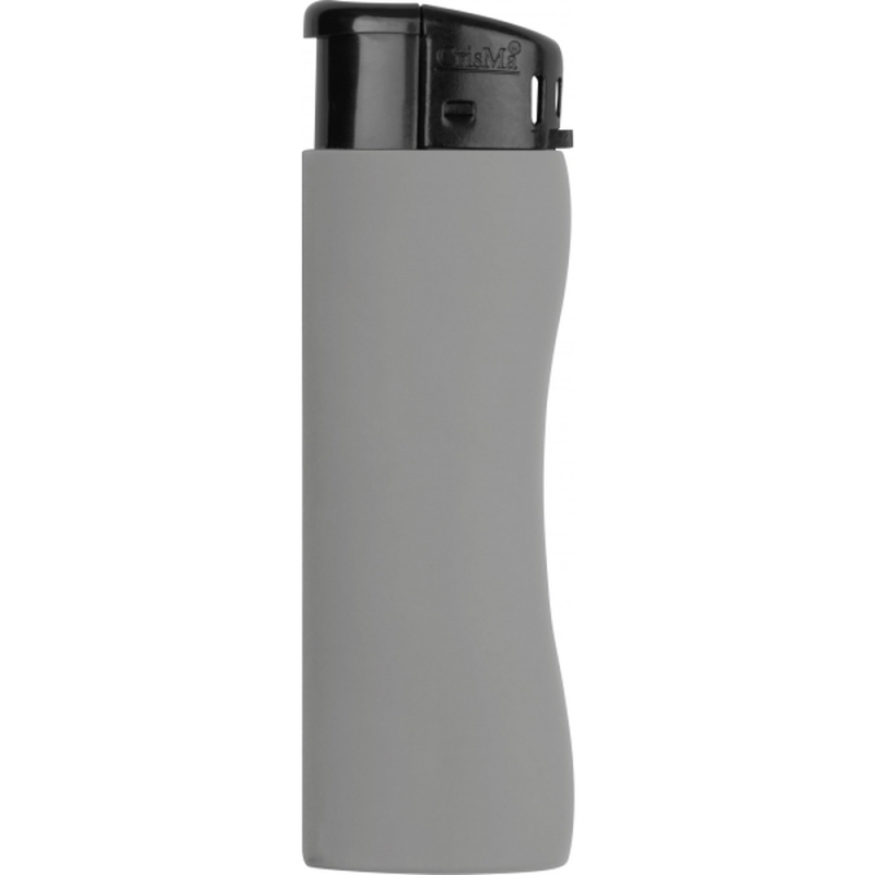 Ergonomic shaped electronic lighter in fresh colors with soft touch surface, refillable. The flame is infinitely adjustable.