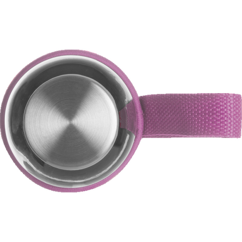 Leak-proof drinking bottle made of glass with stainless steel lid and a capacity of 500 ml. The bottle is delivered in a matching neoprene sleeve with carrying strap. We print your logo in the center of the sleeve. Engraving on the lid or bottle and printing on the bottle possible on request.