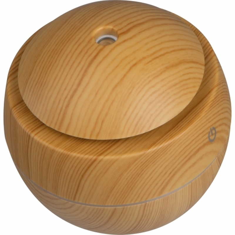 Aroma humidifier with color-changing LED light made of plastic with a wood look. The humidifier has a capacity of approx. 130 ml and can be enriched with essential oils. The humidifier is operated with the included USB cable. We will print your logo on the humidifier.