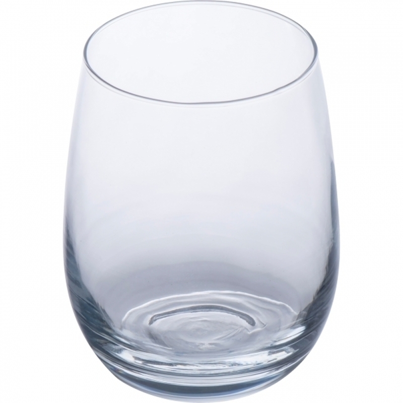 Shapely drinking glass with a capacity of 420 ml. We will print your logo on the glass using a ceramic transfer.