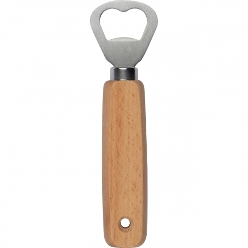Classic bottle opener with a wooden handle. We engrave your logo on the wooden handle.