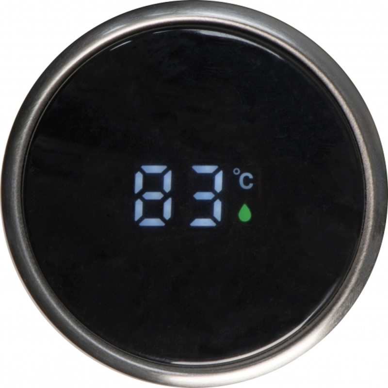 Thermal flask made of borosilicate glass with a digital temperature display in the lid, sieve and a capacity of 400 ml. Your logo will be printed onto the glass.