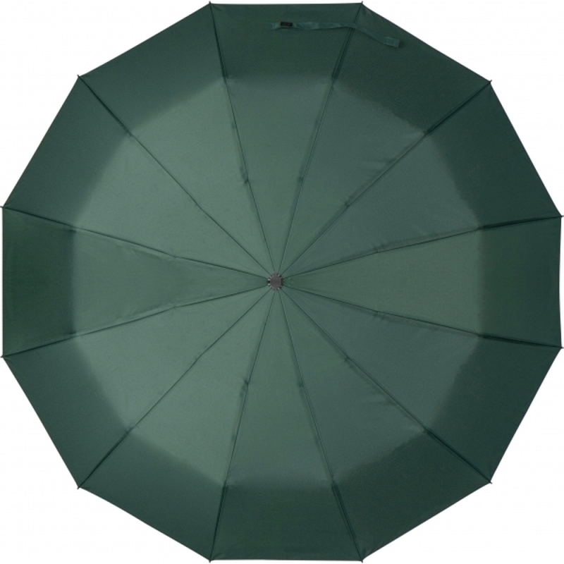 Extremely robust luxury pocket umbrella with automatic opening and closing, rubberised handle, fibreglass and metal poles, 190T pongee covering and a matching colour protective cover. Storm-proof up to 180 kmh wind speed. We print your logo on a segment.