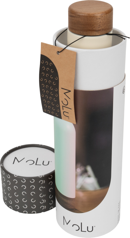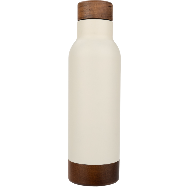Double-walled thermal bottle made of recycled stainless steel with acacia wood cap and bottom. After removing the cap, bottle can be washed in a dishwasher. Capacity 630 ml