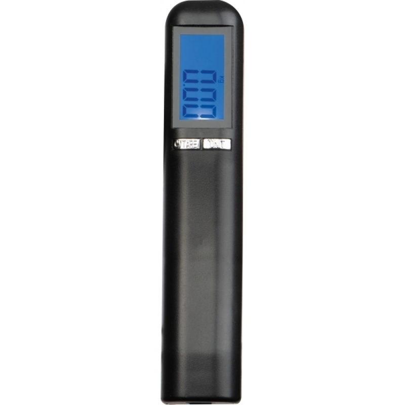 Electric luggage scale with measurements in g, oz, kg, and lbs. Integrated tare function for accurate weighing, bright LCD display for luggage up to 50kg, and a comfortable, sturdy handle.