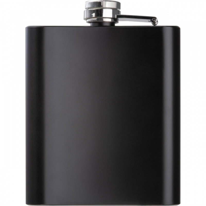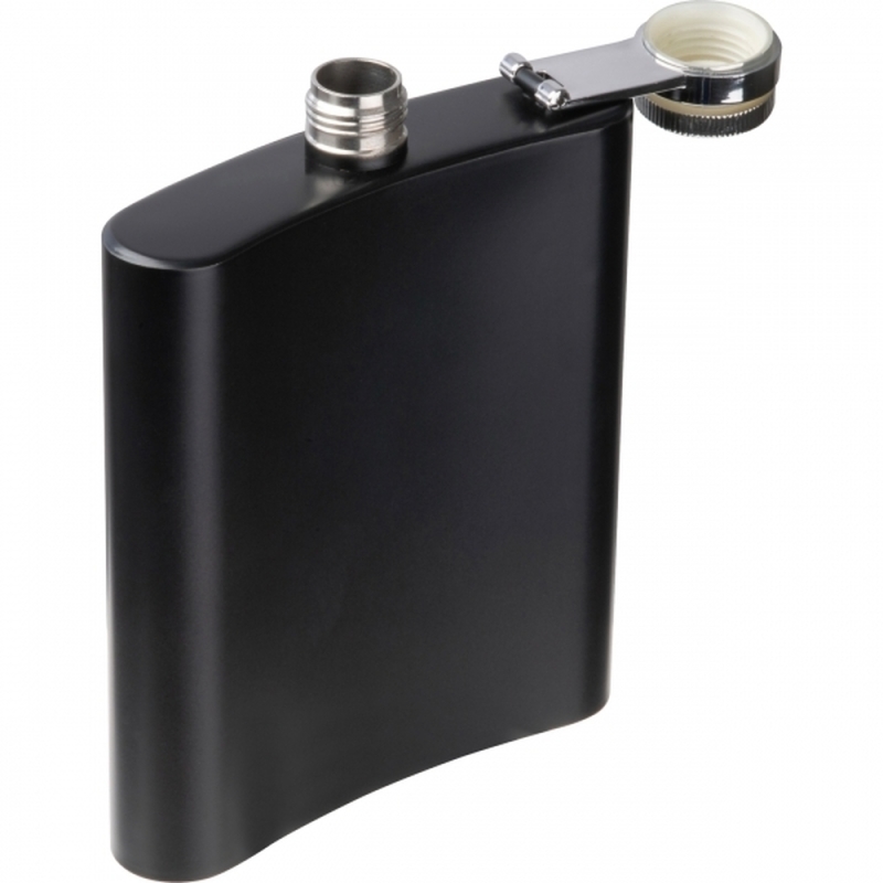 Elegant stainless steel hip flask with a matte black design and a capacity of 207ml. Perfect for on-the-go use or as a stylish gift.