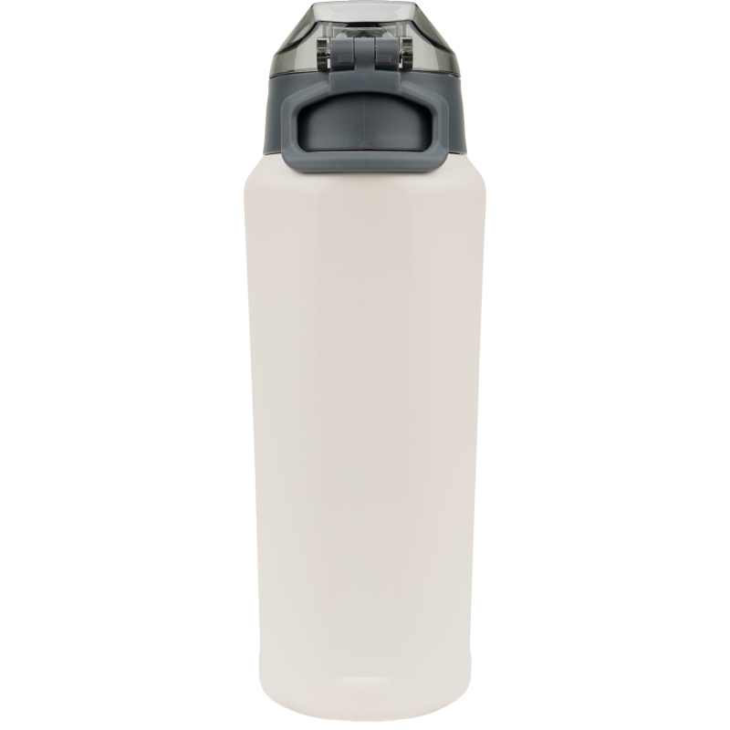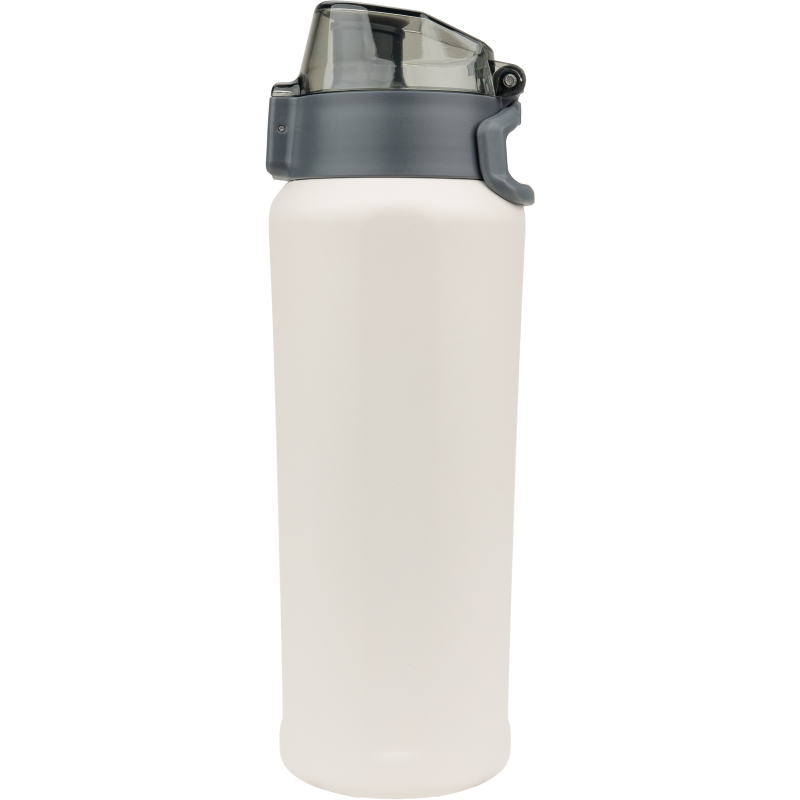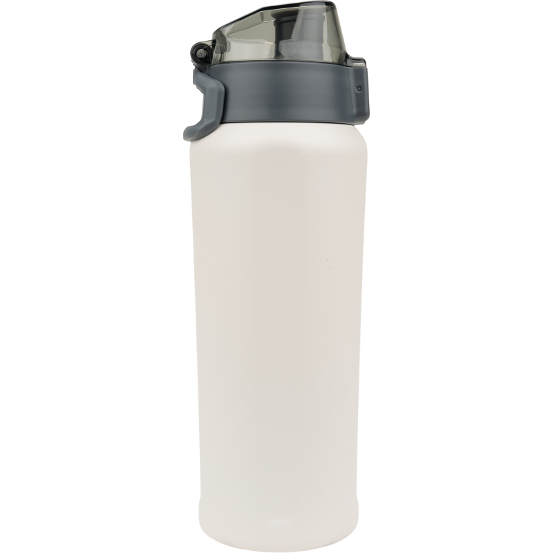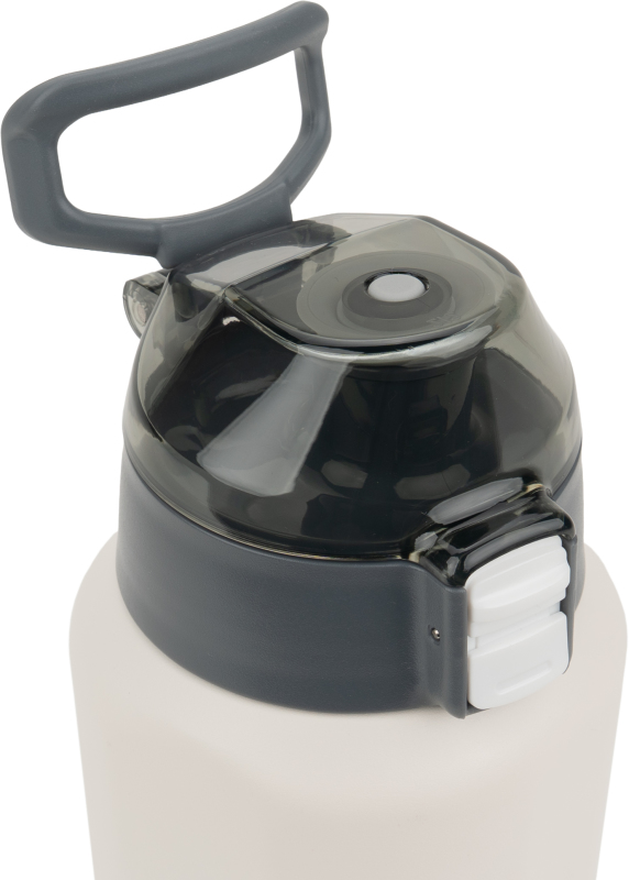 Stylish bottle made from recycled stainless steel, double-walled with vacuum insulation to keep beverages hot or cold for extended periods. It has a 600ml capacity and features a practical click lid for easy handling. Your logo will be centrally engraved with laser etching—perfect for branding. Functional, high-quality, and ideal for on-the-go use.