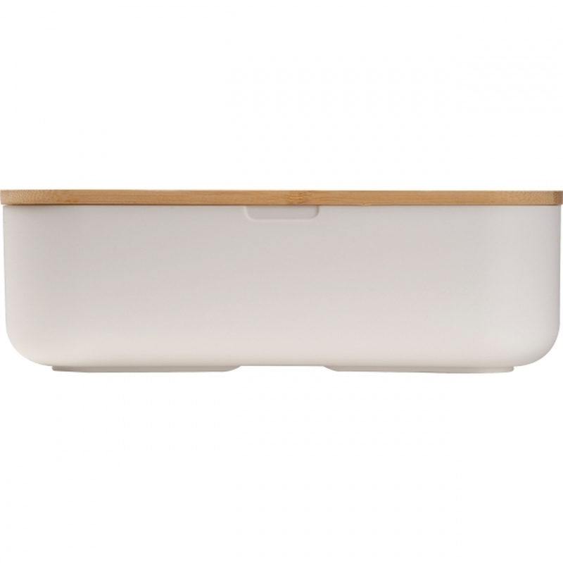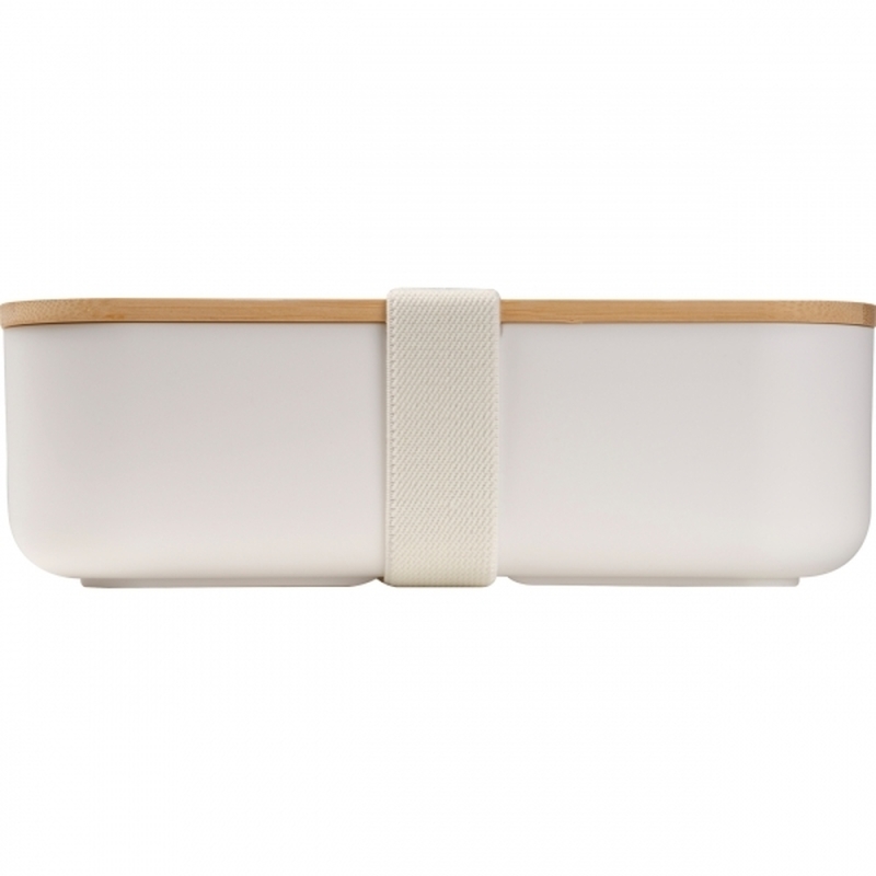 Practical lunchbox made of durable PP material with a stylish bamboo lid and a flexible elastic band for a secure hold. Perfect for meals on the go and a great alternative to traditional lunchboxes, with a capacity of 1000ml. Modern and versatile.