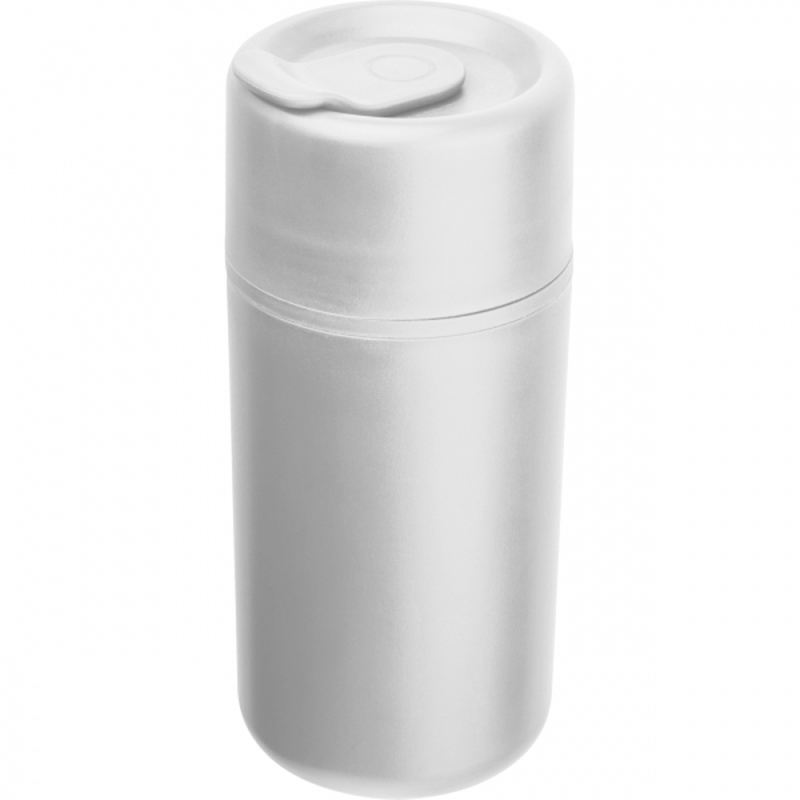 Double-walled drinking cup made of polypropylene with a capacity of 500 ml and a sliding drinking lid. Your logo is printed on the cup. Full wrap-around printing available upon request.