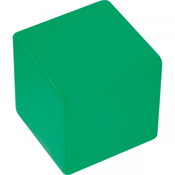 Anti-stress cube made of foamed polyurethane (PU). Your logo is applied to one side of the cube using laser engraving.
