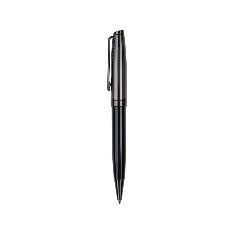 Exclusive Pierre Cardin ballpoint pen with an elegant design. The body is made in glossy black with the upper part in a gunmetal shade. The pen features a rotating mechanism and a high-quality blue refill with a 1 mm tip, ensuring smooth and comfortable writing. The set also includes a spare black refill. The pen comes packed in an elegant gift box with a certificate of authenticity.