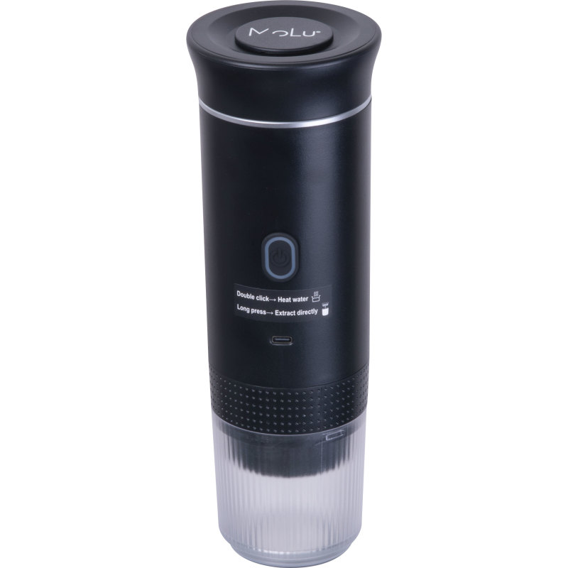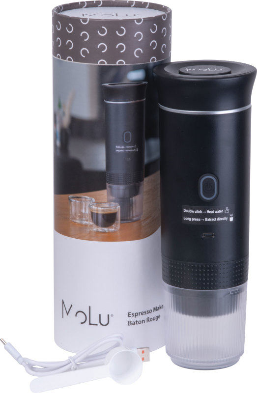 MoLu 3-in-1 Espresso To Go – For true coffee lovers on the move. One button. Five minutes. Freshly brewed espresso from your favorite pod or grained coffee. 60 ml water tank, powerful heating system, cold & hot ready. With etachable capsule holder and cup – smart, compact, complete.