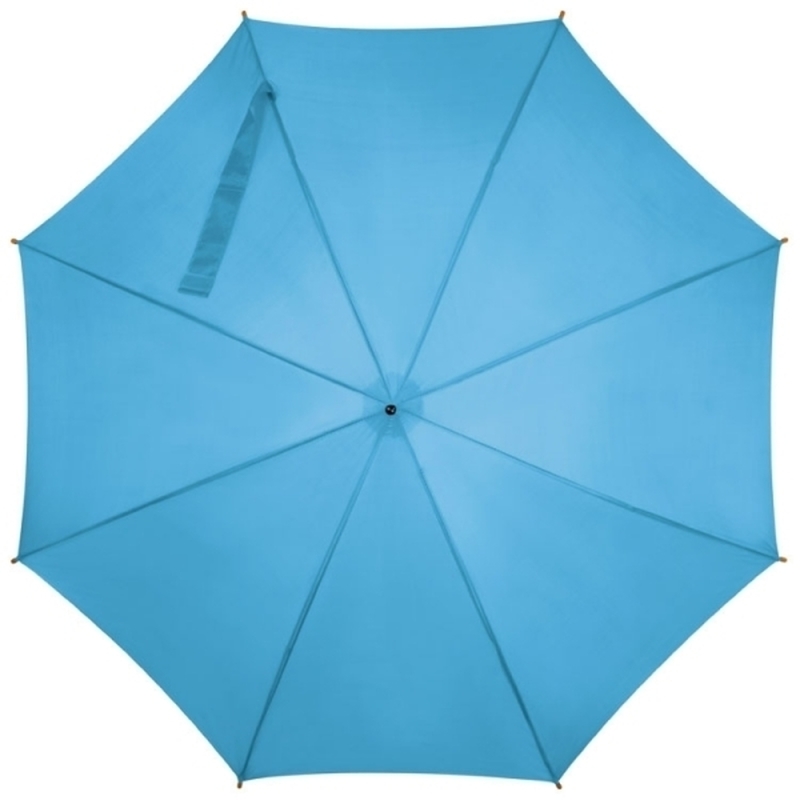 The classic, automatic umbrella with 190T polyester cover, real wood shaft & handle and a metal frame with high performance automatic spring. We print your logo on a segment.