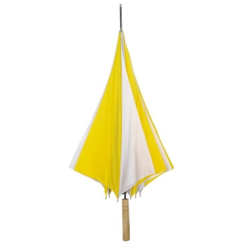 Automatic umbrella with metal frame, straight wooden handle and 170T polyester covering. Your logo will be printed on one segment.