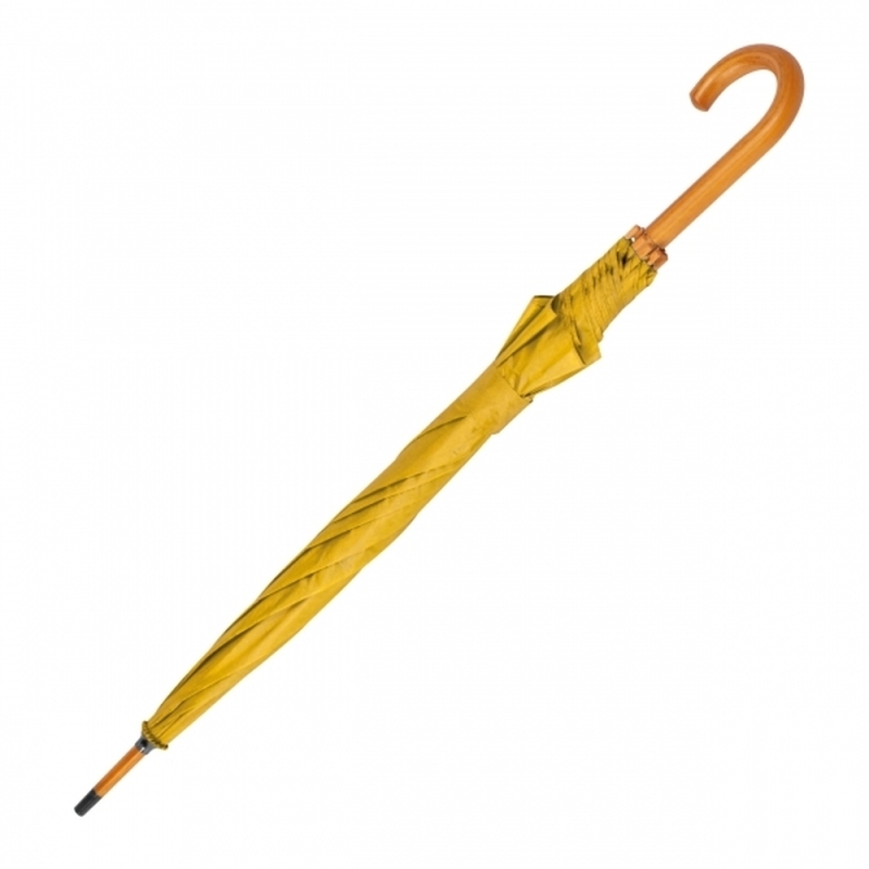 The classic, automatic umbrella with 190T polyester cover, real wood shaft & handle and a metal frame with high performance automatic spring. We print your logo on a segment.