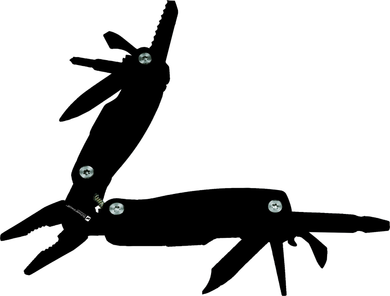The multitool has 13 tools, including: pliers, file, flat and Philips screwdriver, knife, saw, bottle opener and can opener. The tool is packed in a neoprene cover.