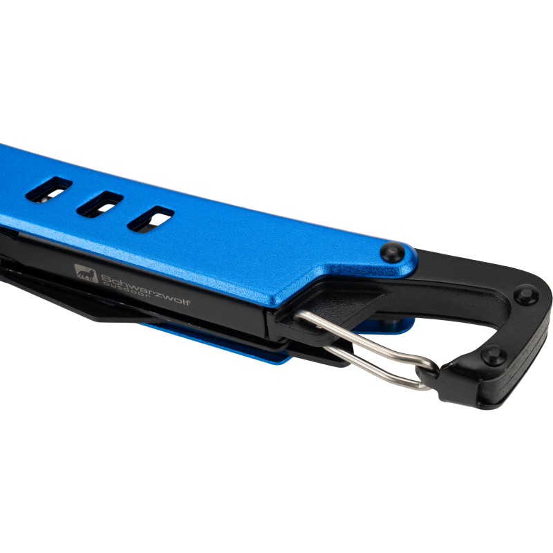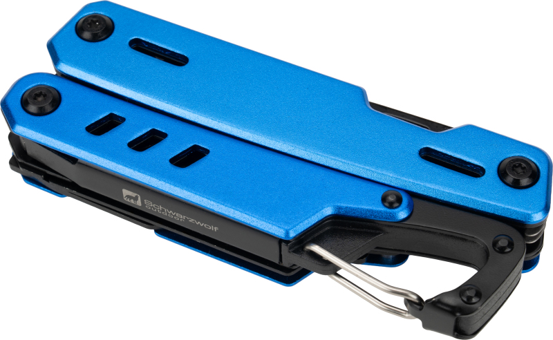 Schwarzwolf multitool contains 11 kinds of tools - a knife, a beer opener, a can opener, pliers, splitters, a saw, a screwdriver, a Phillips screwdriver, a file, a stripping tool. The tool set has a carabiner and is packed in a neoprene case and is packed in a Schwarzwolf box.