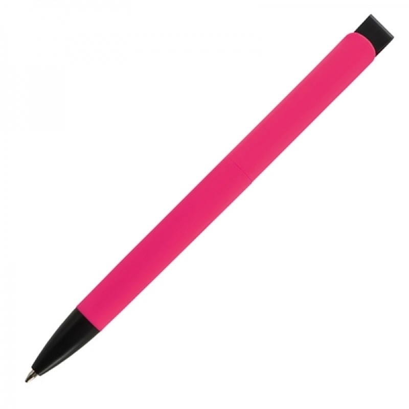 Plastic ballpen with rubber finish and blue-writing refill. We engrave your logo on the metal clip.