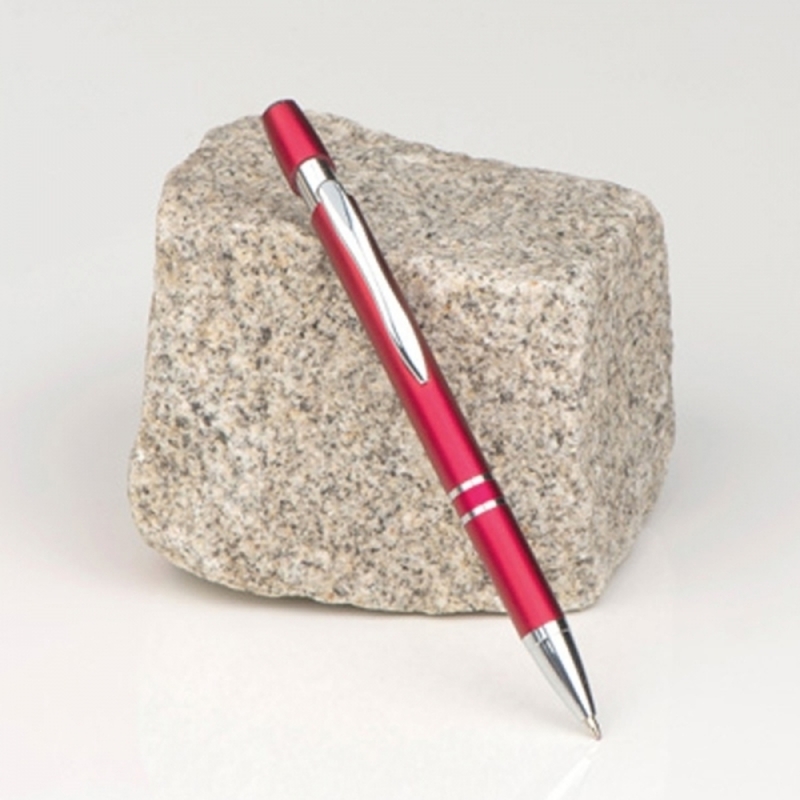 Metallic-looking plastic ballpen with large capacity refill and push function. We will print your logo below the clip.